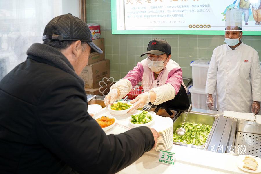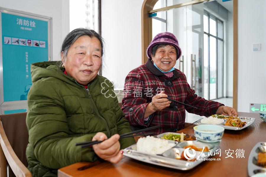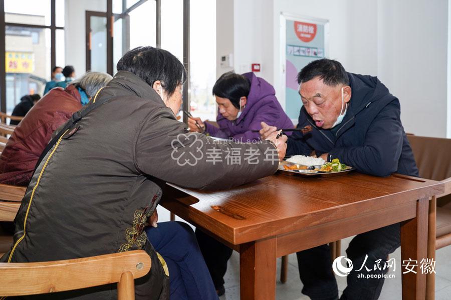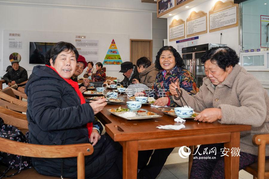 六安市凤凰桥社区食堂内的“暖心餐”让老人喜笑颜开。人民网 王锐摄