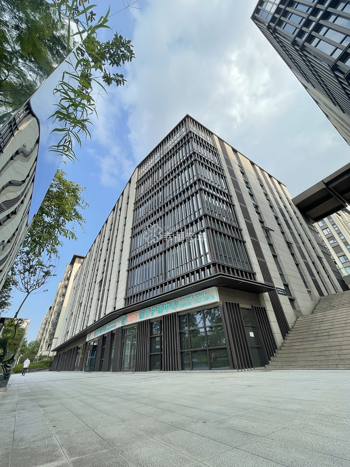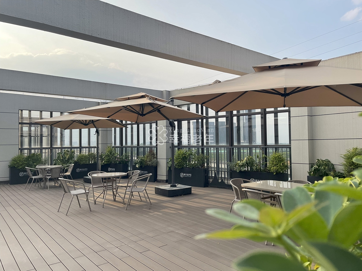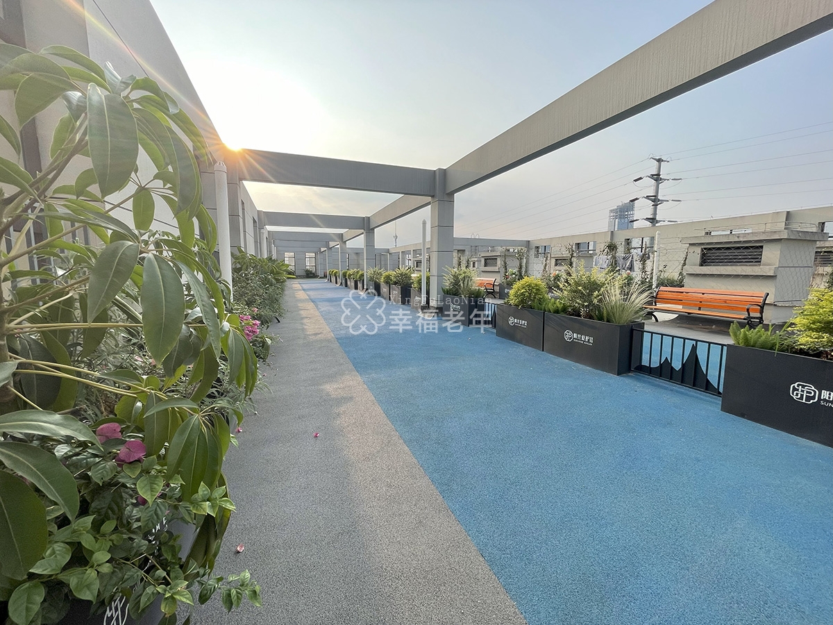 2. 环境条件:中心坐落于风景如画的东安湖公园旁周边自然环境优美,空气清新宜人,为患者的康复与修养提供了得天独厚的条件。同时中心内设有空中花园,可供长者释放心灵的压力,实现在房间与户外的场景的自由切换。