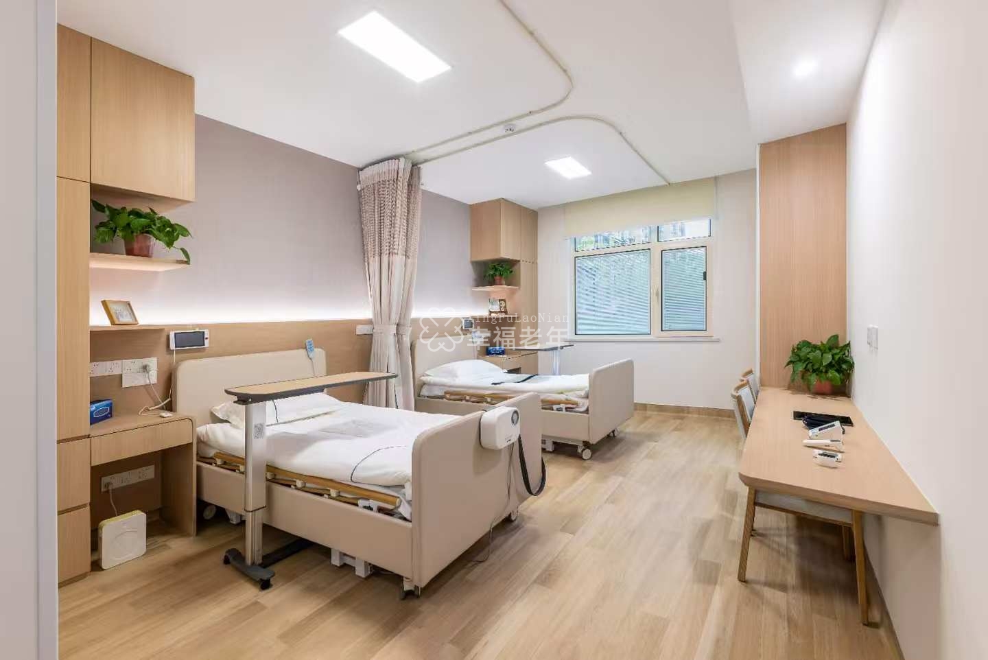 中心建筑面积达6500平方米,共设67个养老单元,采用中新合作的“养老院+护理院”双院模式,特别为带各种管道的坐轮椅及卧床长辈提供专业照护。项目秉承“就近就便、普惠服务、功能集成、安全运营”四大原则,以“住家生活延伸”为理念,通过“医、养、动、护”一站式服务,开创社区整合照护新模式。