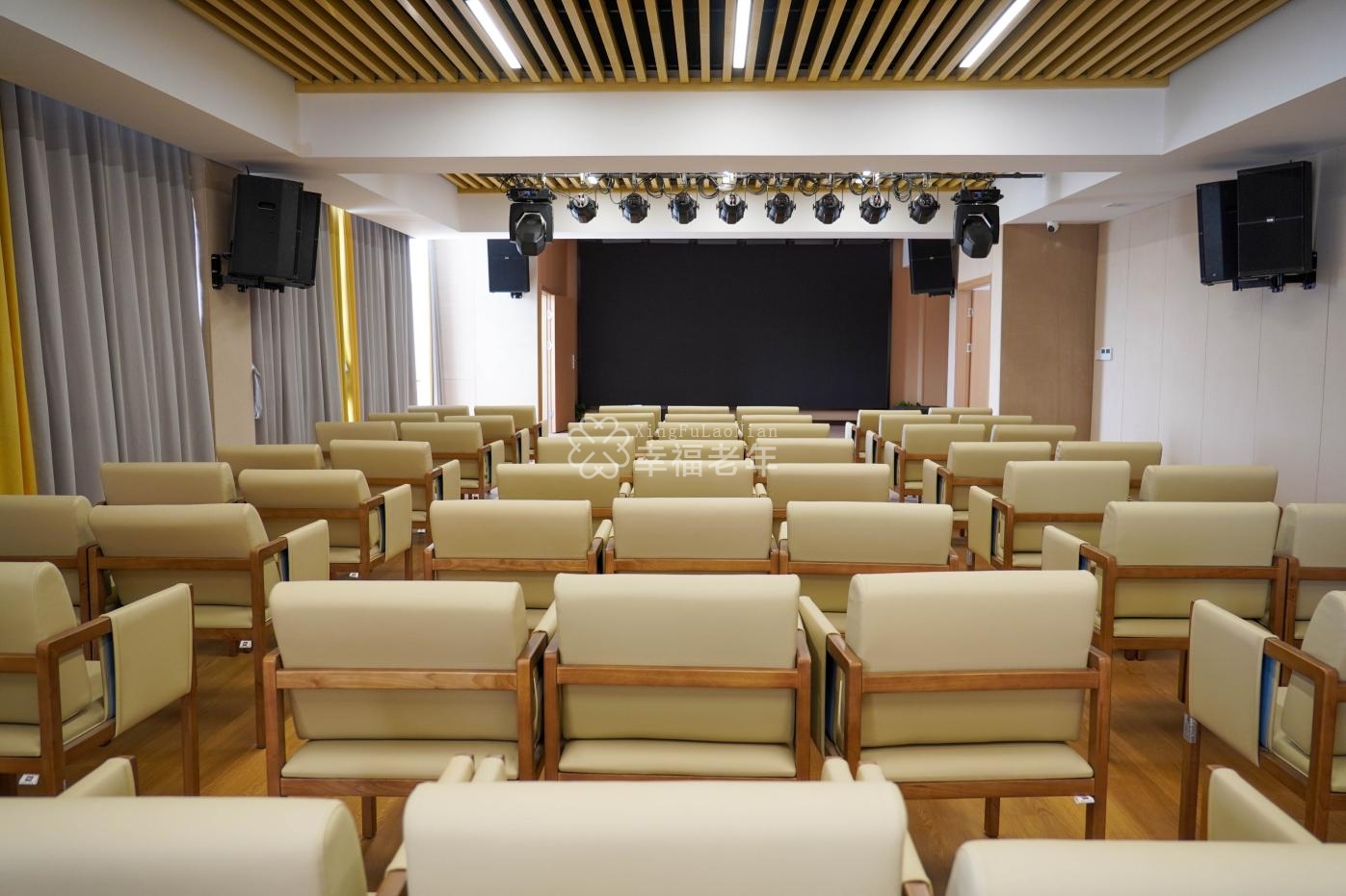 院区设有床位131张,每个房间都设有单独的中央空调、地暖、电视、护理床、床头呼叫系统、卫生间、淋浴、洗漱间。拥有药房、诊室、医疗中心、康复中心、智慧养老中心、药膳食疗区,禅修室、会议室、手工室、阅览室、书画室、舞蹈室、棋牌室、宴会包间、多功能活动室、电影放映厅等。