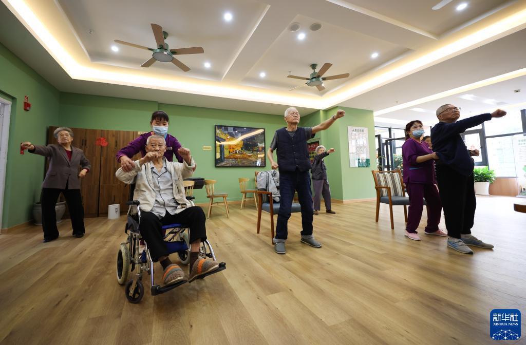 3月20日,工作人员在龙里县城区老年人日间照料中心帮助老年人做健身操。近年来,贵州省黔南布依族苗族自治州龙里县探索推进互助养老模式,通过政府补贴和个人自筹的模式,在乡村发展农村互助养老站,在社区构建老年人照料中心,整合资源增强养老机构服务能力,满足多层次养老需求。新华社发(黄晓海摄)